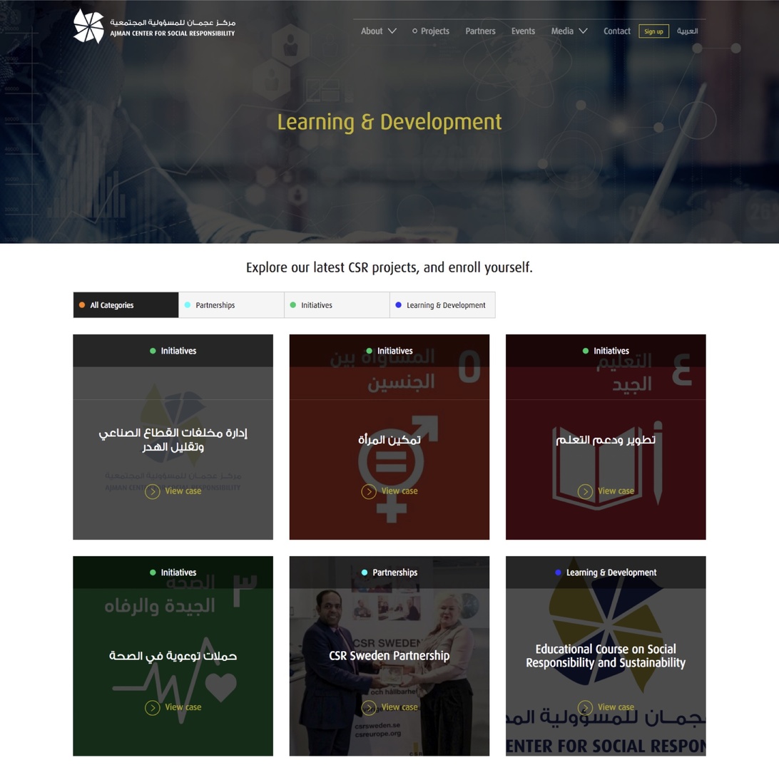 Ajman CSR team approached our team through our partners in UAE to develop the portal, featuring CSR projects, events and opportunities. Also connecting CSR individuals and entities with their respective stakeholders and facilitate projects’ enrollment in the field.