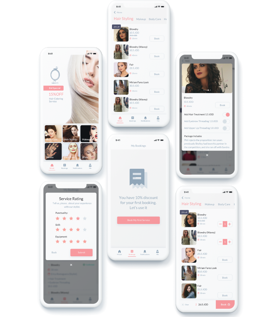 Mrayti approached our team to help develop an automated solution to handle their daily operational processes, including the customers’ bookings, the stylists workflow and overall provide an integrated solution to seamlessly run their day-to-day operations.